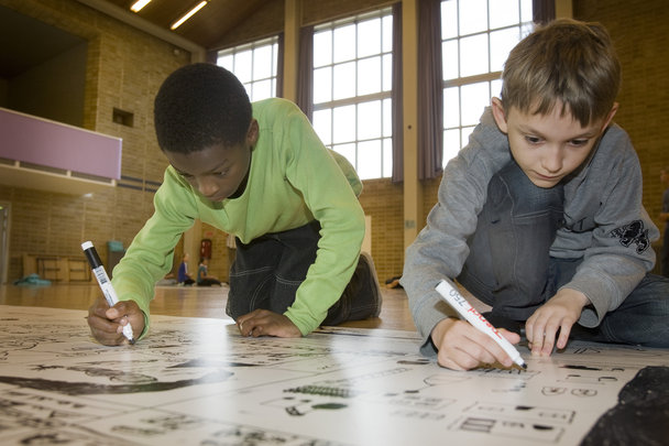 Børn tegner på Festugeprojekt på Sct.Annage Skole