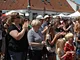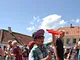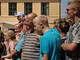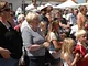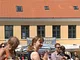 Vagtskiftet ved Marselisborg Slot skærtorsdag kl. 12 tiltrak mange fremmødte, mens politiets indsatsleder undervejs tog sig tid til at besvare spørgsmål fra en nysgerrig dreng.