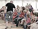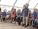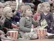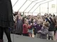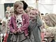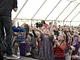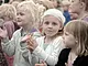 Vagtskiftet ved Marselisborg Slot skærtorsdag kl. 12 tiltrak mange fremmødte, mens politiets indsatsleder undervejs tog sig tid til at besvare spørgsmål fra en nysgerrig dreng.