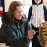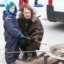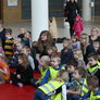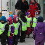 Vagtskiftet ved Marselisborg Slot skærtorsdag kl. 12 tiltrak mange fremmødte, mens politiets indsatsleder undervejs tog sig tid til at besvare spørgsmål fra en nysgerrig dreng.