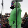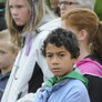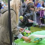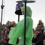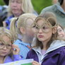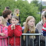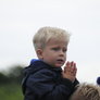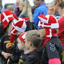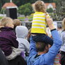 Vagtskiftet ved Marselisborg Slot skærtorsdag kl. 12 tiltrak mange fremmødte, mens politiets indsatsleder undervejs tog sig tid til at besvare spørgsmål fra en nysgerrig dreng.