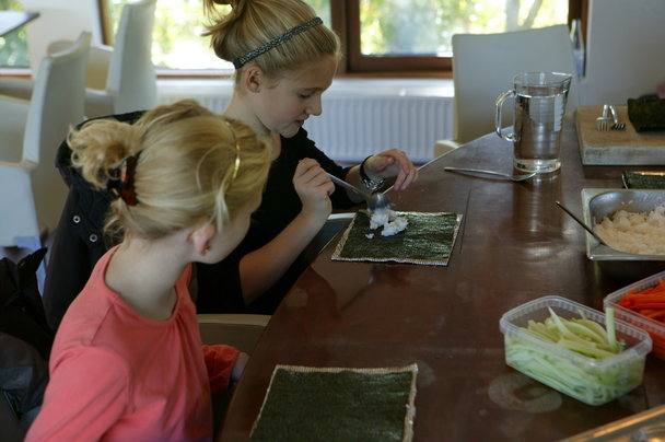 Stor koncentration var nødvendig da ungerne selv lavede sushi i Den japanske restaurant
