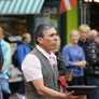 Vagtskiftet ved Marselisborg Slot skærtorsdag kl. 12 tiltrak mange fremmødte, mens politiets indsatsleder undervejs tog sig tid til at besvare spørgsmål fra en nysgerrig dreng.