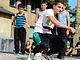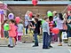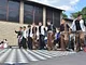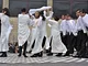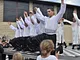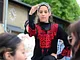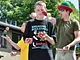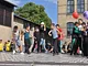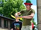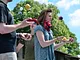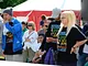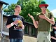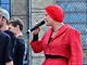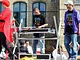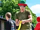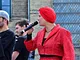 Vagtskiftet ved Marselisborg Slot skærtorsdag kl. 12 tiltrak mange fremmødte, mens politiets indsatsleder undervejs tog sig tid til at besvare spørgsmål fra en nysgerrig dreng.