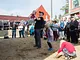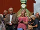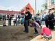 Vagtskiftet ved Marselisborg Slot skærtorsdag kl. 12 tiltrak mange fremmødte, mens politiets indsatsleder undervejs tog sig tid til at besvare spørgsmål fra en nysgerrig dreng.