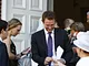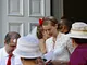 Vagtskiftet ved Marselisborg Slot skærtorsdag kl. 12 tiltrak mange fremmødte, mens politiets indsatsleder undervejs tog sig tid til at besvare spørgsmål fra en nysgerrig dreng.