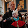 Vagtskiftet ved Marselisborg Slot skærtorsdag kl. 12 tiltrak mange fremmødte, mens politiets indsatsleder undervejs tog sig tid til at besvare spørgsmål fra en nysgerrig dreng.