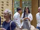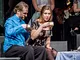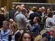 Vagtskiftet ved Marselisborg Slot skærtorsdag kl. 12 tiltrak mange fremmødte, mens politiets indsatsleder undervejs tog sig tid til at besvare spørgsmål fra en nysgerrig dreng.