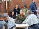 Vagtskiftet ved Marselisborg Slot skærtorsdag kl. 12 tiltrak mange fremmødte, mens politiets indsatsleder undervejs tog sig tid til at besvare spørgsmål fra en nysgerrig dreng.