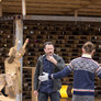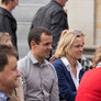 Vagtskiftet ved Marselisborg Slot skærtorsdag kl. 12 tiltrak mange fremmødte, mens politiets indsatsleder undervejs tog sig tid til at besvare spørgsmål fra en nysgerrig dreng.