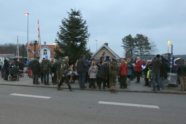 Juletræet på torvet i Hjortshøj blev tændt kl. 16. Flere hundrede beboere var mødt op før at synge julen ind og derefter nyde en kop varm cacao eller et glas gløgg.