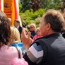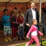 Vagtskiftet ved Marselisborg Slot skærtorsdag kl. 12 tiltrak mange fremmødte, mens politiets indsatsleder undervejs tog sig tid til at besvare spørgsmål fra en nysgerrig dreng.