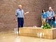 Vagtskiftet ved Marselisborg Slot skærtorsdag kl. 12 tiltrak mange fremmødte, mens politiets indsatsleder undervejs tog sig tid til at besvare spørgsmål fra en nysgerrig dreng.