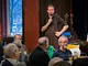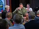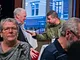 Vagtskiftet ved Marselisborg Slot skærtorsdag kl. 12 tiltrak mange fremmødte, mens politiets indsatsleder undervejs tog sig tid til at besvare spørgsmål fra en nysgerrig dreng.
