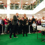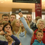 Vagtskiftet ved Marselisborg Slot skærtorsdag kl. 12 tiltrak mange fremmødte, mens politiets indsatsleder undervejs tog sig tid til at besvare spørgsmål fra en nysgerrig dreng.