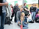 Vagtskiftet ved Marselisborg Slot skærtorsdag kl. 12 tiltrak mange fremmødte, mens politiets indsatsleder undervejs tog sig tid til at besvare spørgsmål fra en nysgerrig dreng.