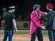 Vagtskiftet ved Marselisborg Slot skærtorsdag kl. 12 tiltrak mange fremmødte, mens politiets indsatsleder undervejs tog sig tid til at besvare spørgsmål fra en nysgerrig dreng.
