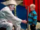 Vagtskiftet ved Marselisborg Slot skærtorsdag kl. 12 tiltrak mange fremmødte, mens politiets indsatsleder undervejs tog sig tid til at besvare spørgsmål fra en nysgerrig dreng.