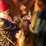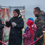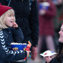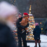 Vagtskiftet ved Marselisborg Slot skærtorsdag kl. 12 tiltrak mange fremmødte, mens politiets indsatsleder undervejs tog sig tid til at besvare spørgsmål fra en nysgerrig dreng.