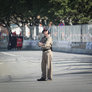 Vagtskiftet ved Marselisborg Slot skærtorsdag kl. 12 tiltrak mange fremmødte, mens politiets indsatsleder undervejs tog sig tid til at besvare spørgsmål fra en nysgerrig dreng.