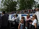 Vagtskiftet ved Marselisborg Slot skærtorsdag kl. 12 tiltrak mange fremmødte, mens politiets indsatsleder undervejs tog sig tid til at besvare spørgsmål fra en nysgerrig dreng.