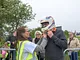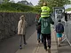 Vagtskiftet ved Marselisborg Slot skærtorsdag kl. 12 tiltrak mange fremmødte, mens politiets indsatsleder undervejs tog sig tid til at besvare spørgsmål fra en nysgerrig dreng.