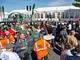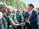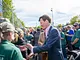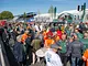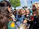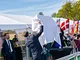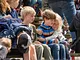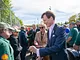 Vagtskiftet ved Marselisborg Slot skærtorsdag kl. 12 tiltrak mange fremmødte, mens politiets indsatsleder undervejs tog sig tid til at besvare spørgsmål fra en nysgerrig dreng.