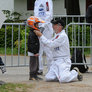 Vagtskiftet ved Marselisborg Slot skærtorsdag kl. 12 tiltrak mange fremmødte, mens politiets indsatsleder undervejs tog sig tid til at besvare spørgsmål fra en nysgerrig dreng.