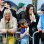 Vagtskiftet ved Marselisborg Slot skærtorsdag kl. 12 tiltrak mange fremmødte, mens politiets indsatsleder undervejs tog sig tid til at besvare spørgsmål fra en nysgerrig dreng.