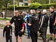 Vagtskiftet ved Marselisborg Slot skærtorsdag kl. 12 tiltrak mange fremmødte, mens politiets indsatsleder undervejs tog sig tid til at besvare spørgsmål fra en nysgerrig dreng.