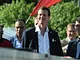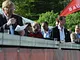 Vagtskiftet ved Marselisborg Slot skærtorsdag kl. 12 tiltrak mange fremmødte, mens politiets indsatsleder undervejs tog sig tid til at besvare spørgsmål fra en nysgerrig dreng.
