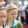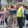 Vagtskiftet ved Marselisborg Slot skærtorsdag kl. 12 tiltrak mange fremmødte, mens politiets indsatsleder undervejs tog sig tid til at besvare spørgsmål fra en nysgerrig dreng.