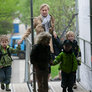 Vagtskiftet ved Marselisborg Slot skærtorsdag kl. 12 tiltrak mange fremmødte, mens politiets indsatsleder undervejs tog sig tid til at besvare spørgsmål fra en nysgerrig dreng.