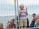 Vagtskiftet ved Marselisborg Slot skærtorsdag kl. 12 tiltrak mange fremmødte, mens politiets indsatsleder undervejs tog sig tid til at besvare spørgsmål fra en nysgerrig dreng.