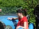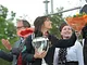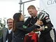 Vagtskiftet ved Marselisborg Slot skærtorsdag kl. 12 tiltrak mange fremmødte, mens politiets indsatsleder undervejs tog sig tid til at besvare spørgsmål fra en nysgerrig dreng.