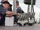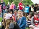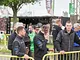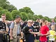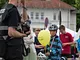 Vagtskiftet ved Marselisborg Slot skærtorsdag kl. 12 tiltrak mange fremmødte, mens politiets indsatsleder undervejs tog sig tid til at besvare spørgsmål fra en nysgerrig dreng.
