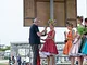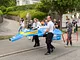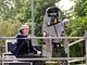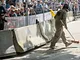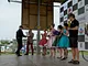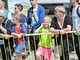 Vagtskiftet ved Marselisborg Slot skærtorsdag kl. 12 tiltrak mange fremmødte, mens politiets indsatsleder undervejs tog sig tid til at besvare spørgsmål fra en nysgerrig dreng.