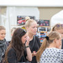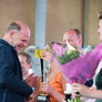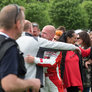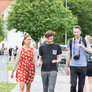 Vagtskiftet ved Marselisborg Slot skærtorsdag kl. 12 tiltrak mange fremmødte, mens politiets indsatsleder undervejs tog sig tid til at besvare spørgsmål fra en nysgerrig dreng.