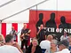 Vagtskiftet ved Marselisborg Slot skærtorsdag kl. 12 tiltrak mange fremmødte, mens politiets indsatsleder undervejs tog sig tid til at besvare spørgsmål fra en nysgerrig dreng.