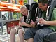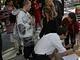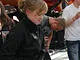Vagtskiftet ved Marselisborg Slot skærtorsdag kl. 12 tiltrak mange fremmødte, mens politiets indsatsleder undervejs tog sig tid til at besvare spørgsmål fra en nysgerrig dreng.