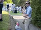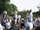 Vagtskiftet ved Marselisborg Slot skærtorsdag kl. 12 tiltrak mange fremmødte, mens politiets indsatsleder undervejs tog sig tid til at besvare spørgsmål fra en nysgerrig dreng.