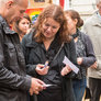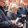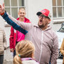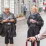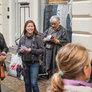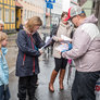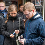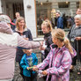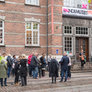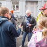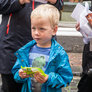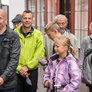 Vagtskiftet ved Marselisborg Slot skærtorsdag kl. 12 tiltrak mange fremmødte, mens politiets indsatsleder undervejs tog sig tid til at besvare spørgsmål fra en nysgerrig dreng.