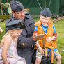 Vagtskiftet ved Marselisborg Slot skærtorsdag kl. 12 tiltrak mange fremmødte, mens politiets indsatsleder undervejs tog sig tid til at besvare spørgsmål fra en nysgerrig dreng.