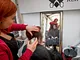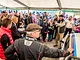 Vagtskiftet ved Marselisborg Slot skærtorsdag kl. 12 tiltrak mange fremmødte, mens politiets indsatsleder undervejs tog sig tid til at besvare spørgsmål fra en nysgerrig dreng.