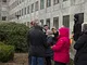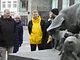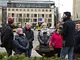 Vagtskiftet ved Marselisborg Slot skærtorsdag kl. 12 tiltrak mange fremmødte, mens politiets indsatsleder undervejs tog sig tid til at besvare spørgsmål fra en nysgerrig dreng.