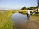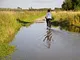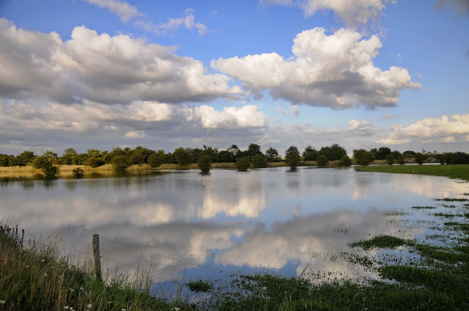 Ved Egå Engsø og stierne omkring, bærer landskabet præg af skybruddet søndag morgen.