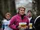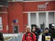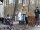 Vagtskiftet ved Marselisborg Slot skærtorsdag kl. 12 tiltrak mange fremmødte, mens politiets indsatsleder undervejs tog sig tid til at besvare spørgsmål fra en nysgerrig dreng.