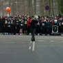 Vagtskiftet ved Marselisborg Slot skærtorsdag kl. 12 tiltrak mange fremmødte, mens politiets indsatsleder undervejs tog sig tid til at besvare spørgsmål fra en nysgerrig dreng.