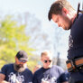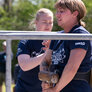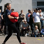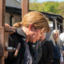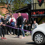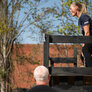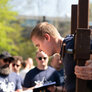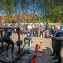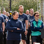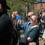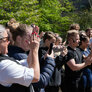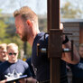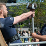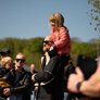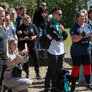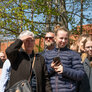 Vagtskiftet ved Marselisborg Slot skærtorsdag kl. 12 tiltrak mange fremmødte, mens politiets indsatsleder undervejs tog sig tid til at besvare spørgsmål fra en nysgerrig dreng.