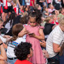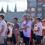 Vagtskiftet ved Marselisborg Slot skærtorsdag kl. 12 tiltrak mange fremmødte, mens politiets indsatsleder undervejs tog sig tid til at besvare spørgsmål fra en nysgerrig dreng.
